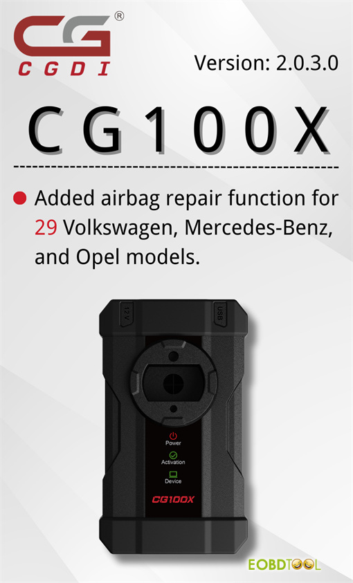 CG100X V2.0.3.0 Update: Added Benz VW OPEL SPC560P50L3 Airbag Repair