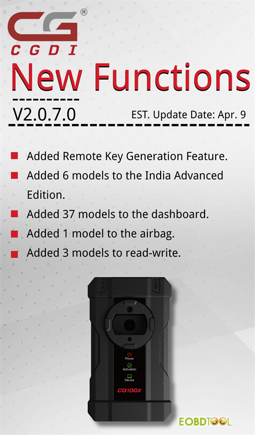 CGDI CG100X Programmer will release the latest software V2.0.7.0 on April 9, 2026.
