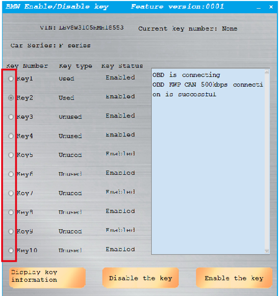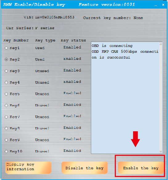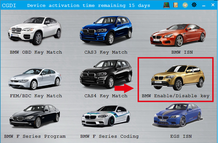 After connecting the CGDI BMW and vehicle via OBD, click BMW enable/disable key