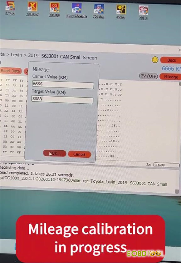 CGDI CG100X Calibrate Toyota Levin 2019 S6J3001 Mileage (CAN Mode)