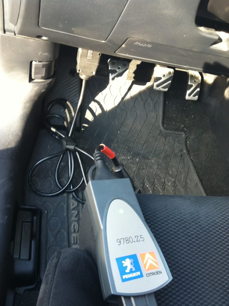1) Locate your vehicle diagnostic socket and plug the Lexia 3 interface into the OBD port.
