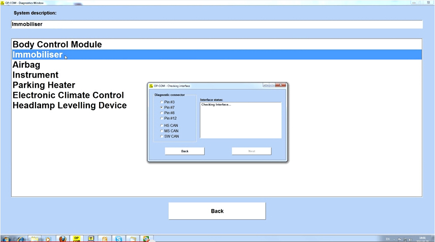 Install Op-com diagnostic software Connect Op-com diagnostic interface with vehicle via OBD socket