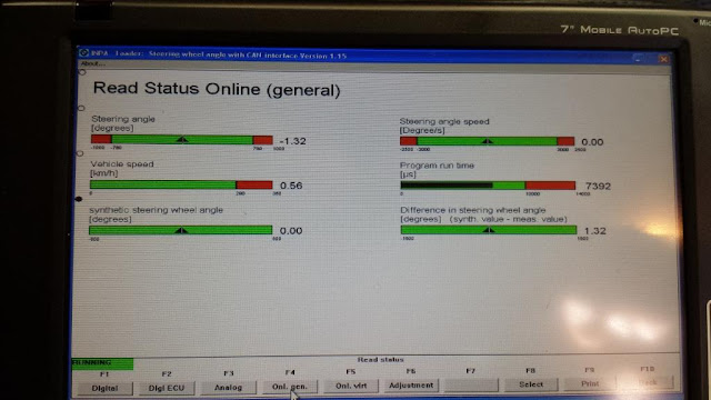 Then you need to reset the steering angle sensor so that it's straight ahead reading in software corresponds with the physical straight ahead position. BMW INPA diagnostic interface can be used to obtain these data in degrees.