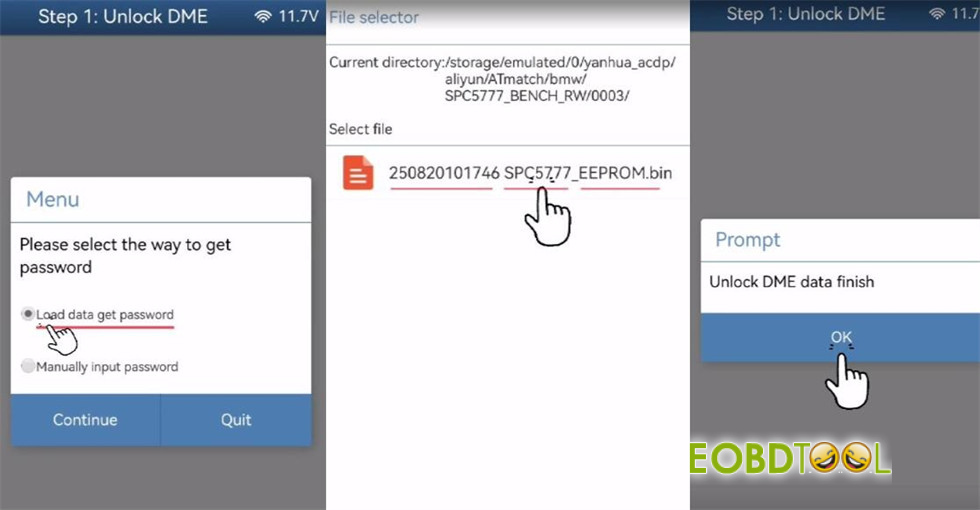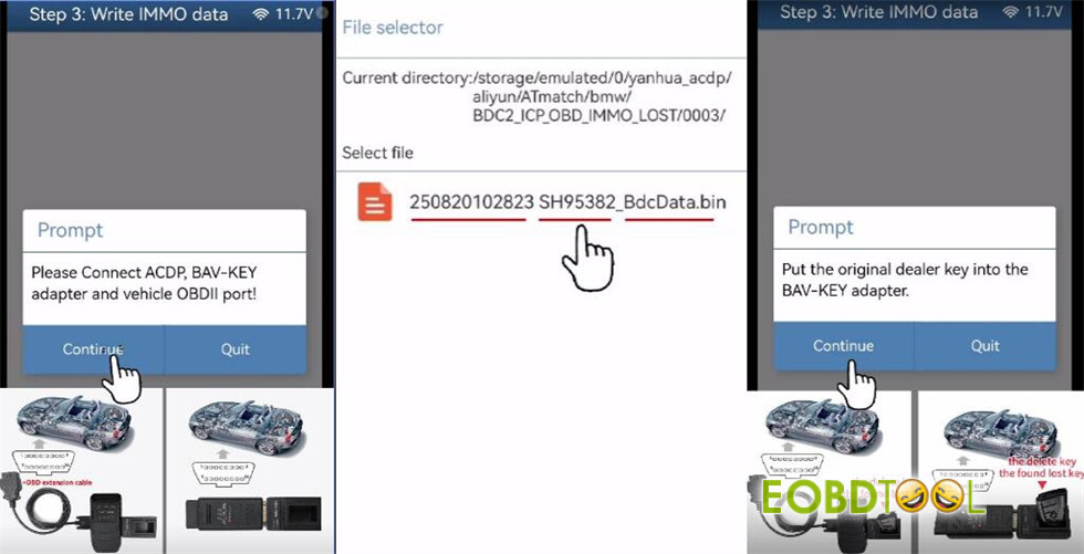 Reinstall the DME, connect ACDP, BAV-KEY Adapter and vehicle via OBDII port