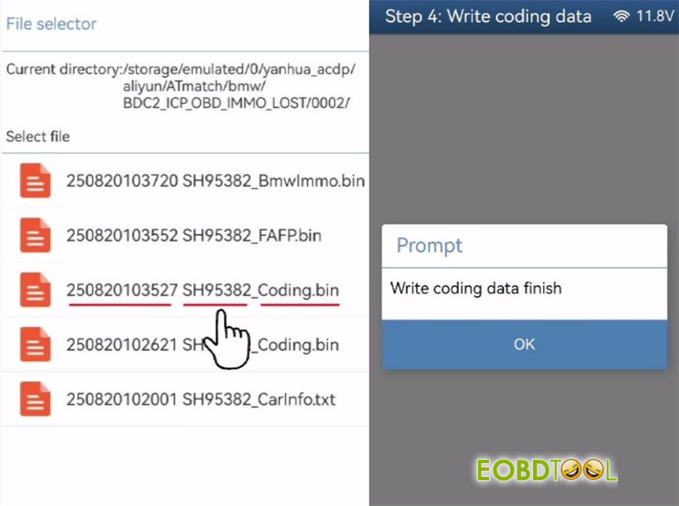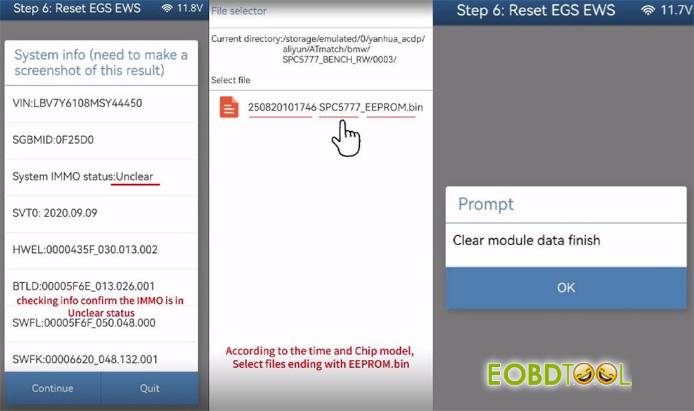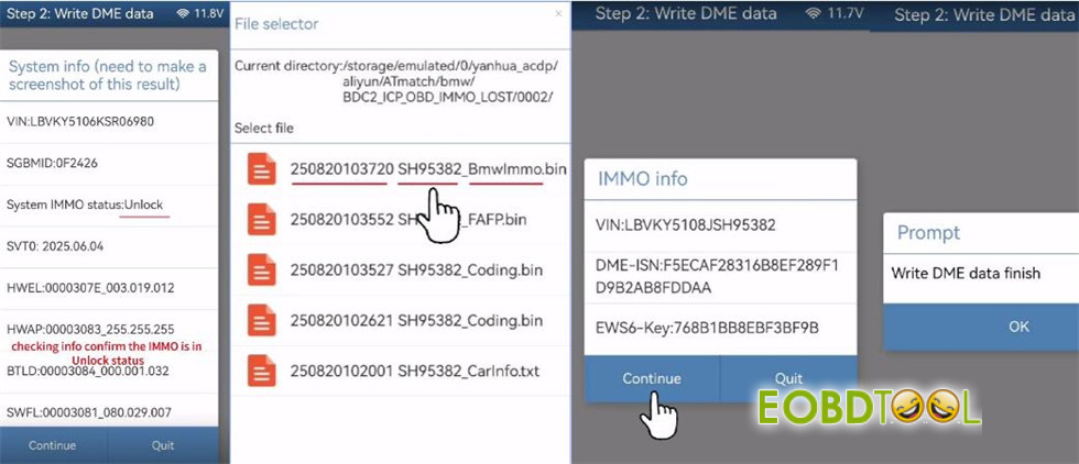 Select “BmwImmo.bin” and check if the IMMO data is correct