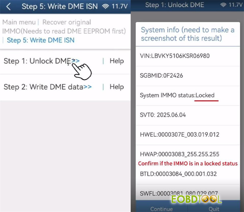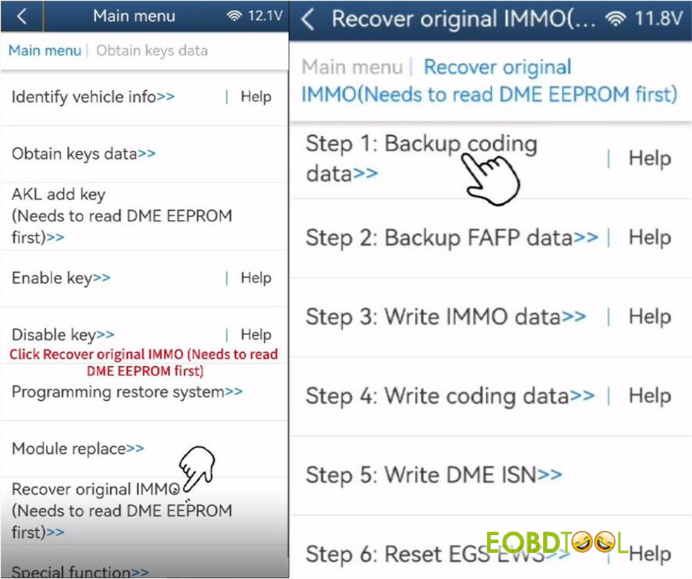 Select “Recover original IMMO (Needs to read DME EEPROM first).”