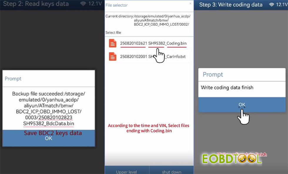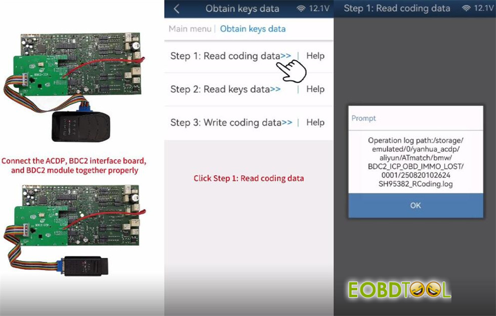 Select “Obtain keys data,” read coding data, and save it (file ends with “Coding.bin”).