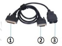 Pay attention that there are 3 connectors on the OBD cable: Connector 1: connect K518ISE OBD port;
