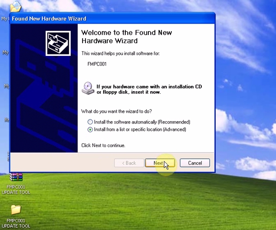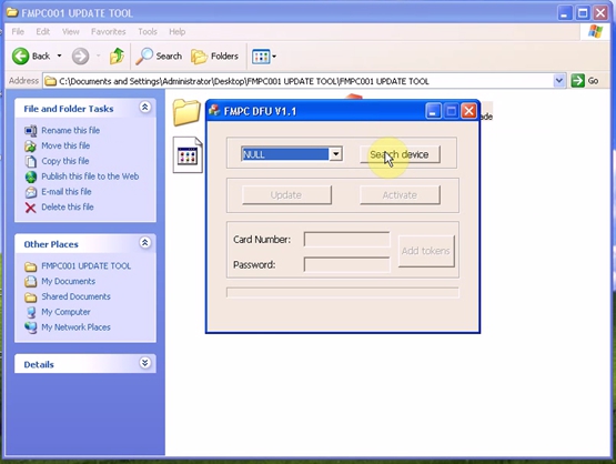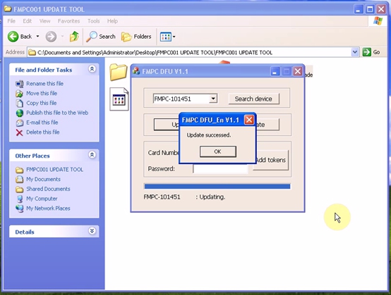 And select “Update” for file selection (“FMPC001 UPDATE TOOL/ FMPC_V1.1 Update”).