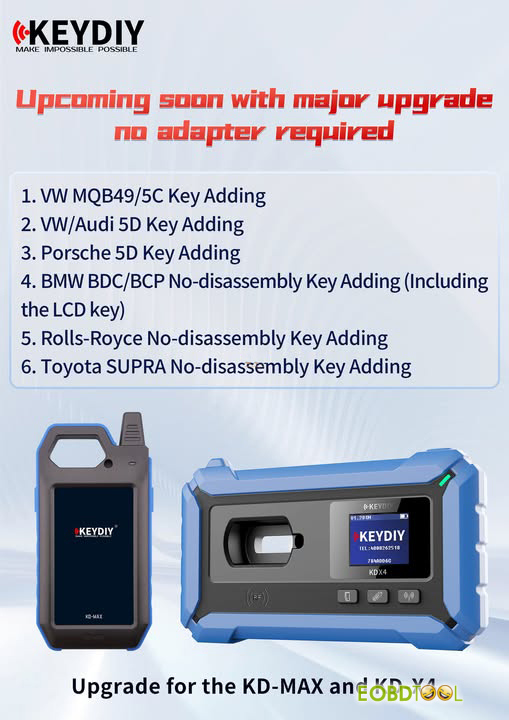 KEYDIY KD-X4 and KD-MAX will soon support direct key adding for VW 5C/5D, Porsche 5D and more, no adapter needed! Stay tuned!