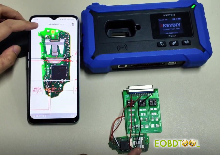 Use KD-X4 key programmer‘s “Key Learning” function or a KD-Mate key programmer to perform the final vehicle matching.