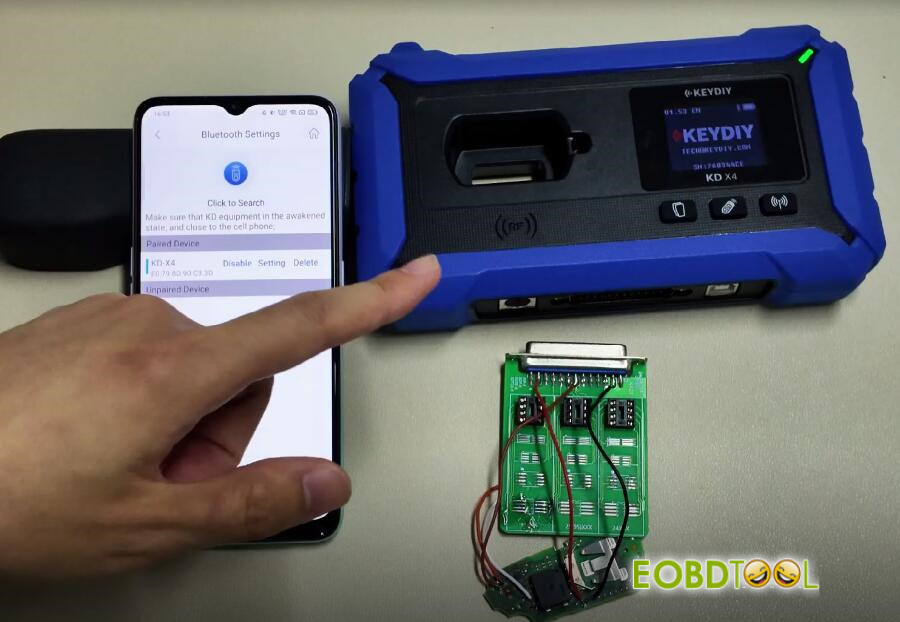 Connect KD-X4 key programmer to your smartphone via Bluetooth.