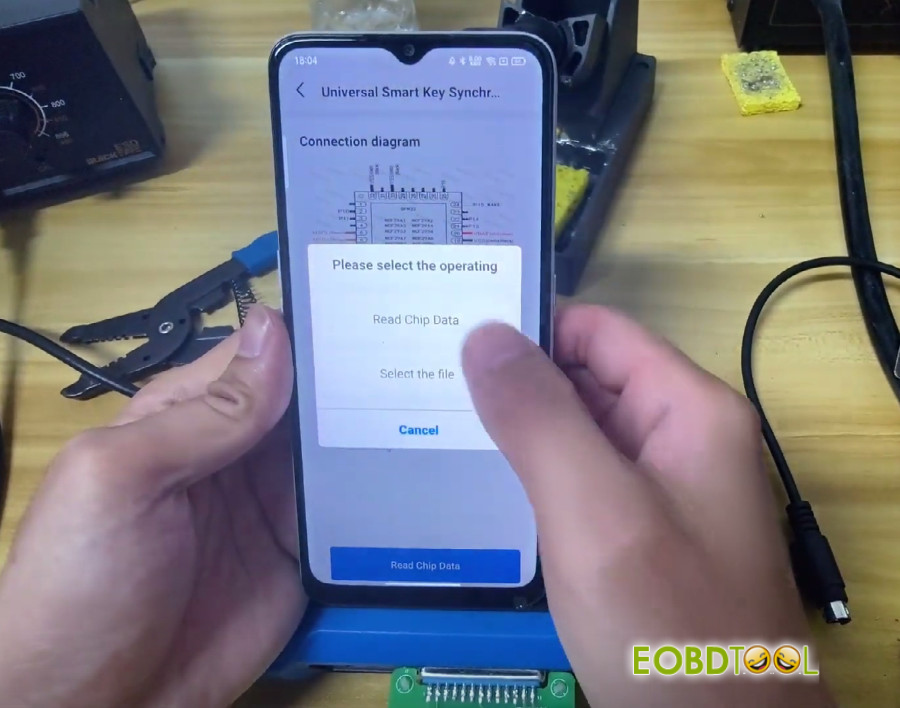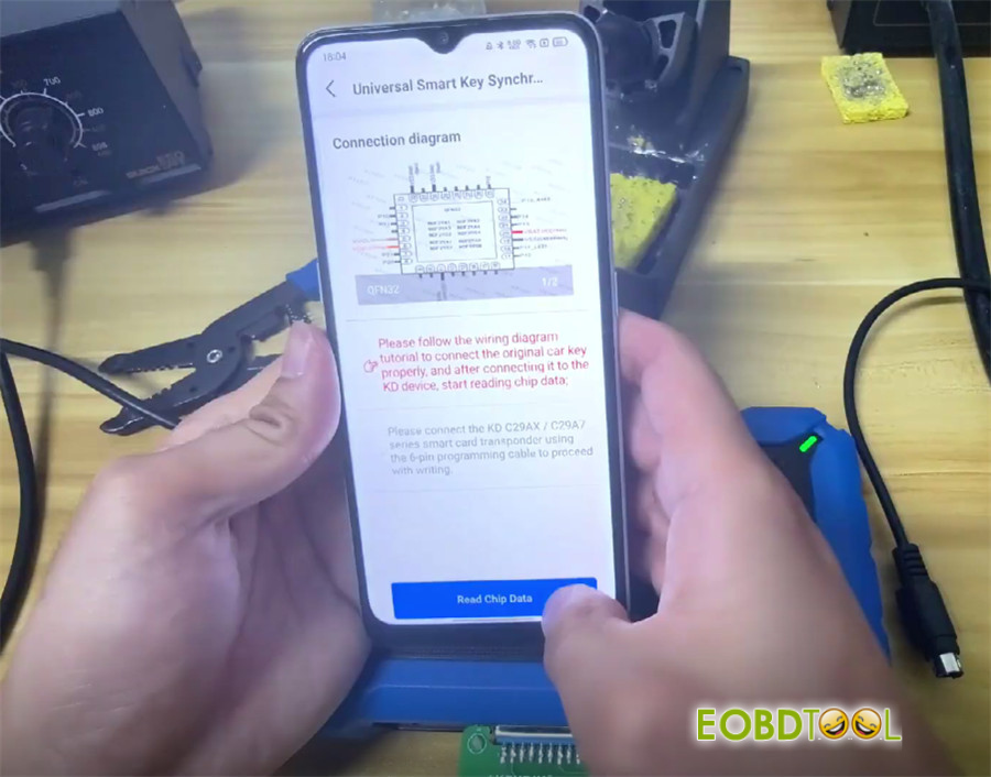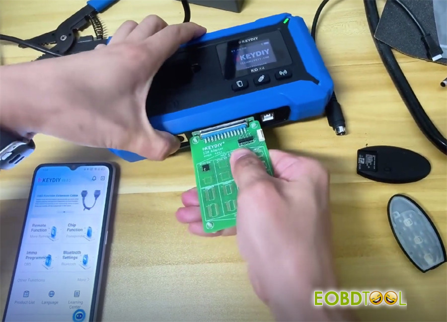 Solder the chip onto KD #13 adapter, then connect the adapter to your KEYDIY KD-X4 or KD-MAX key programmer.