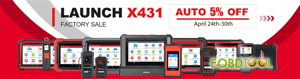 EOBDTool.co.uk is running a factory sale featuring an automatic 5% discount on original Launch X431 diagnostic tools, including popular models like X431 PAD VII, PRO5, PROS Elite, CRP919XBT, etc. The sale ends on April 30, 2026.
