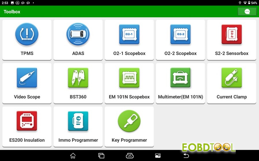 | Extended Module | 13: TPMS (i-TPMS, CRT5011E, TPMS 5011 V2), ADAS, O2-1 Scopebox, O2-2 Scopebox, S2-2 Sensorbox, Video Scope, BST360, EM101N Scopebox, Multimeter (EM 101N), Current Clamp, ES200 Insulation, IMMO Programmer (X-PROG3), X431 Key Programmer | 3 |