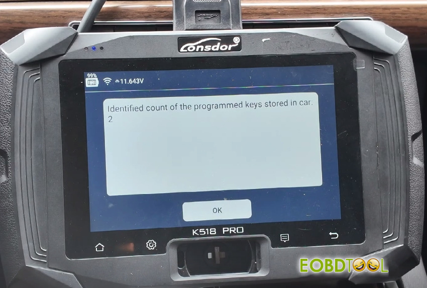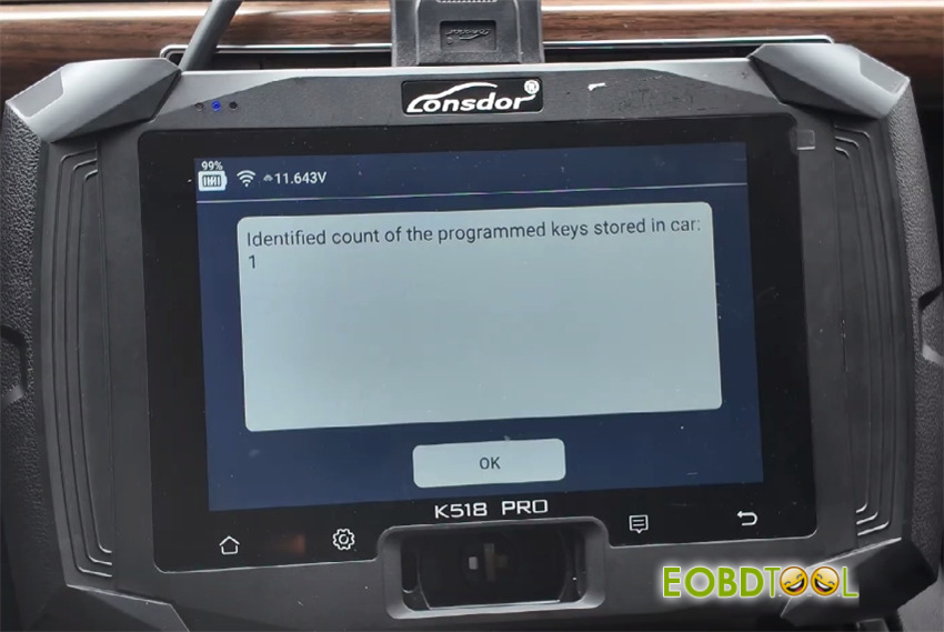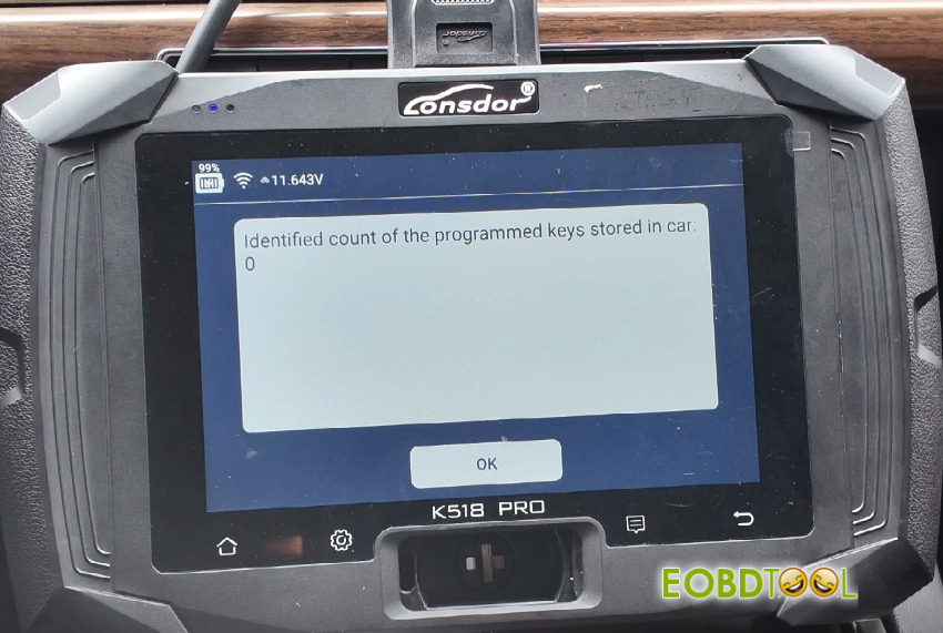 It will show that there are 0 programmed keys in the car. Press OK to continue.