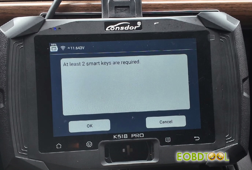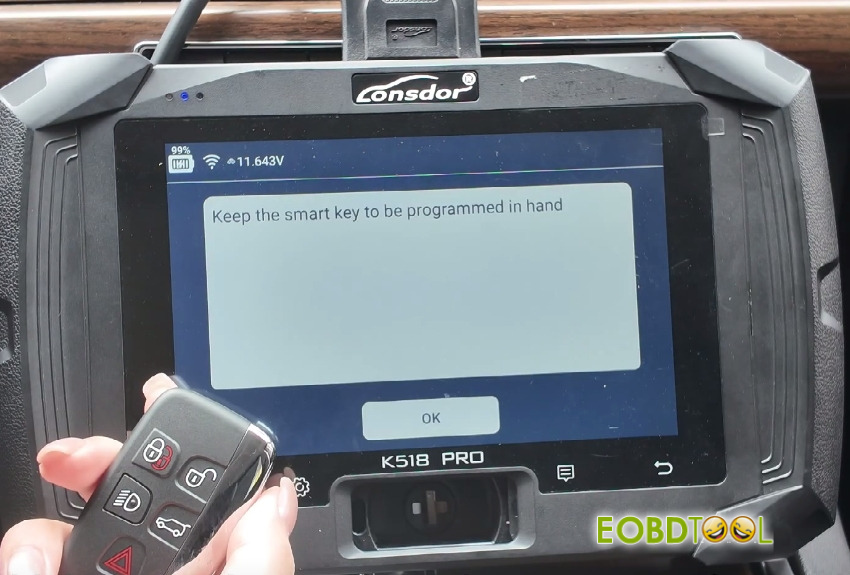 The screen will prompt: “Start programming new smart keys.” Press OK.