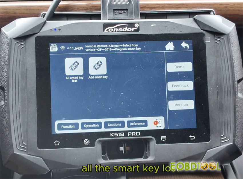 Select Immo & Remote-> Jaguar-> Select from vehicle-> XF-> 2013-> Program Smart Key-> All smart key lost
