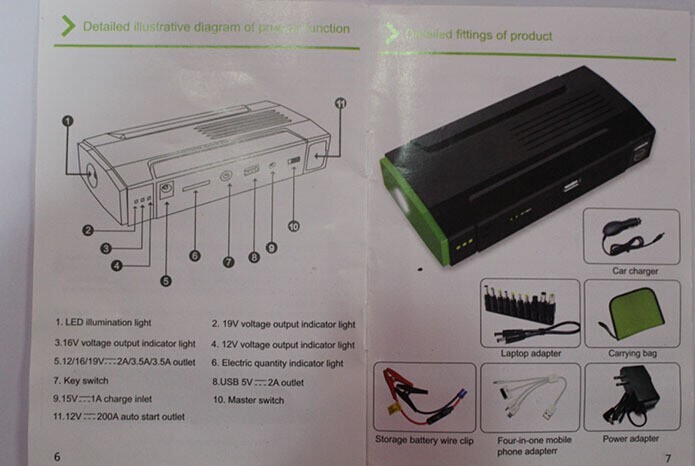 15000mAh multi-function auto emergency start power supply is the smallest and lightest portable power with patented technology in the current market. This multi-function power supply support 12V car for emergency start, portable illumination and various mobile phone, PSP, MP3/MP4 with 1000-time cyclic utilization because of its high capacity & high power polymer cells. So, it is the multiple safety protection design to ensure the product has zero defect.