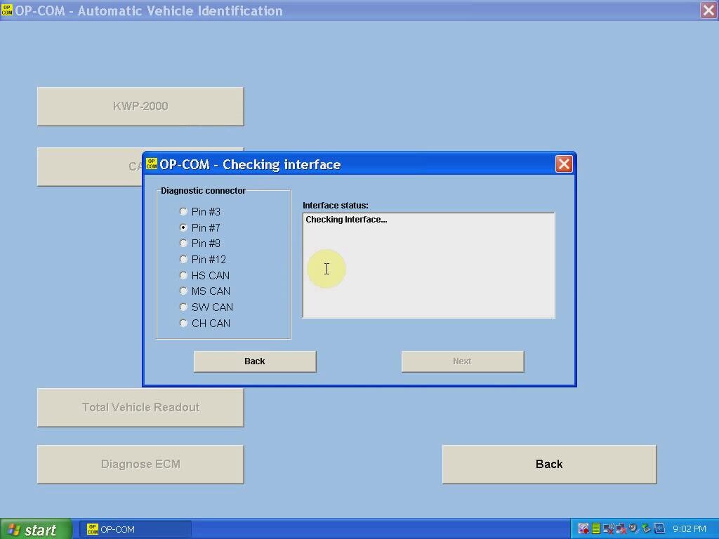 2) Run Op-com software and diagnose