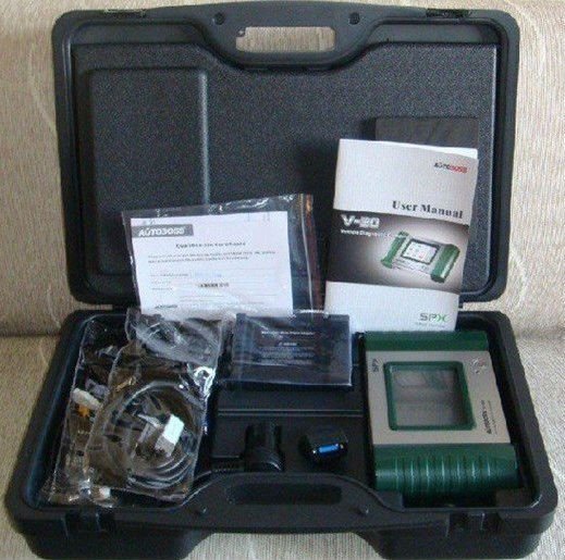 This is my Autoboss V30 package (€460), including the diagnostic Autoboss V30 main unit, some adapters, cables and accessories. Packed well with a plastic box, shipped from China.