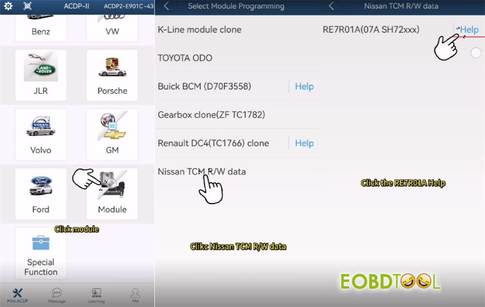 Using Yanhua ACDP2 with Module 43, you can read, write, and clone data for Nissan 07A gearbox (M3B, E0A, G2A, S0E) directly on bench. Follow the step-by-step guide below for a complete walkthrough of the replacement process.